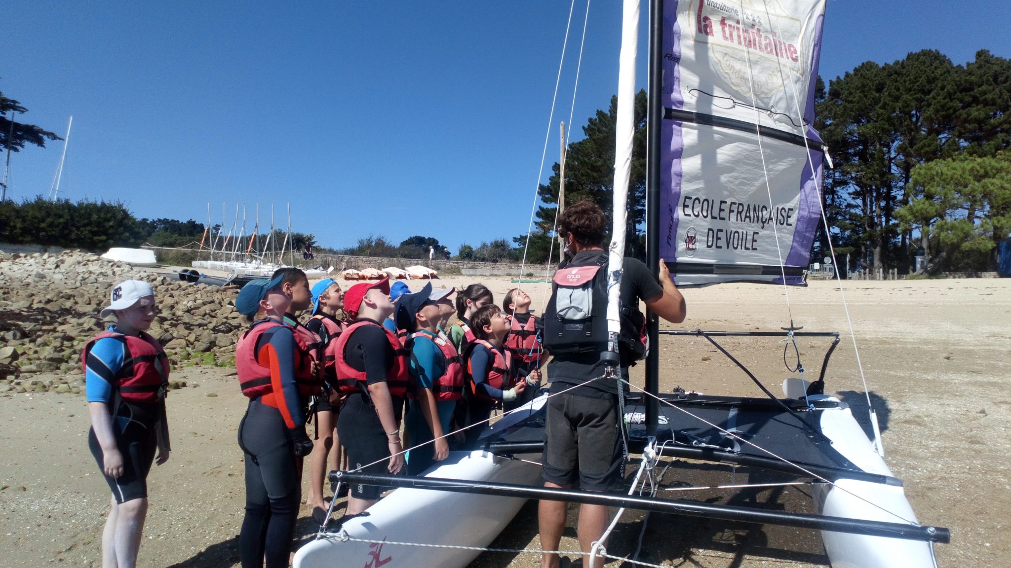 Nous apprenons comment gréer les bateaux, comment régler les bateaux aux différentes allures ,le virement, et l’empannage. Un hobie bien réglé, ça peut foncer !